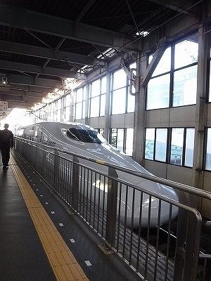 快速電車で30数分、新大阪に着いたが昼飯はコンビニのおにぎりになってしまった![]()