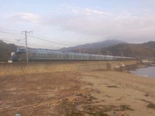 一時間以上、砂浜に座って待ちましたが、通過時間を間違えたのか?SLやまぐち号は撮れずじまい・・・・・・。