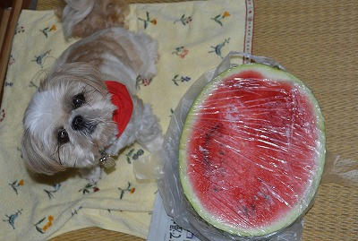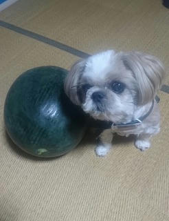 これは2018年にいただいたスイカ、中身をくり出したら愛犬ぷりんがすっぽりと入れそうな