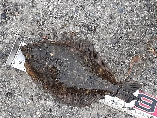 ところで、いつも夏ガレイ釣査結果を知らせてくれるYS田さんから昨日8月3日、「カレイ釣果時季更新!」と大野町で釣った30㌢ちょいの写真が送られてきました。(他には49㌢、1・48kgのマダイ)