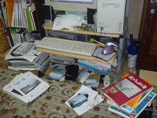 パソコンの周りは資料の山、皆さんには恨みの雨ですが、日曜日に天気がよければちょっと・・・・と考えていた私には◎◎の雨かも・・・・。