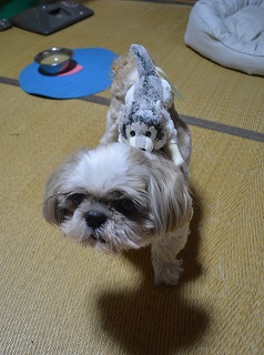 東京の親しくしていただいている方から送っていただいた《秩父三峯神社》の狼さんを負ぶっている愛犬ぷりんです。