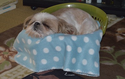 (いつも、お気に入りの洗濯カゴに入ると、安心して寝ていました)