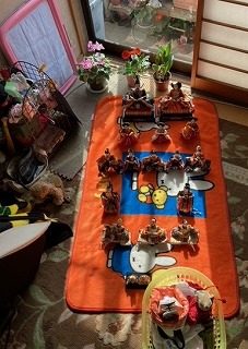 かみさんが狭い道に一生懸命お雛さまを飾っている夢を見たのです。