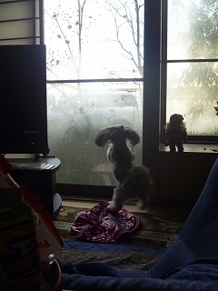(ガラスが割れないか?というほどの勢いで体当たりをしてヒヨドリを追っ払う愛犬ぷりん)