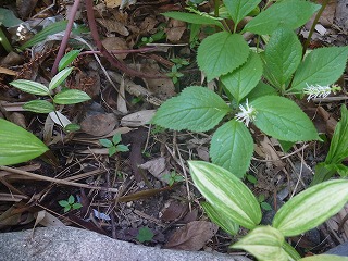 今日は、庭と呼ぶには恥ずかしい家の周りの通路にある、山野草をたっぷりと眺めていました。