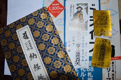 私も今から20年くらい前に、室戸岬にある24番最御崎寺で見つけた金色の納め札を「いただいて」ずっと財布の中で大切にしていました(長い年月持っていたので二つに切れています)。