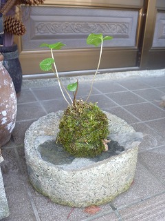 これは、少し前に作っておいた【山葵(わさび)】の苔玉です。