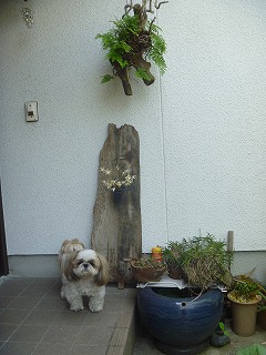 帰ってから、釣り場で拾った流木を玄関脇に飾ってみました。