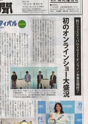 1月25日発行の《釣具新聞》によれば、例年パシフィコ横浜で開催されている「釣りフェスティバル」が、今年はオンライン上での開催になったとか。