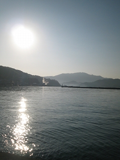 (海面映った朝日がきらきらと輝き、遠くでは野焼きの煙が上っている・・・)