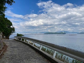 市営駐車場に愛車1号を置いて(駐車料金800円)、愛車2号で似島に渡る(自転車セット往復で1200円)。