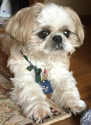 愛犬ぷりんは、玄関で出迎えてくれました。