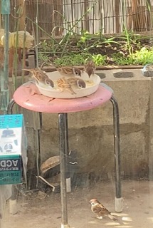 でも、愛犬ぷりんが大好きだったオヤツをお供えをしてののち、ごみとして捨てる気持ちにはなれず、ジャーキーなどの肉系は通路状態の菜園に埋めて、ボーロやビスケットなどは写真のようにトレーに入れておくと、スズメさんたちが朝早くから来ています。