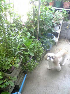(ぷりんも一緒に庭に出ています)