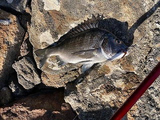(周防大島は強風が舞って、やっと竿が出せる津海木で竿を出すがフグやベラ)