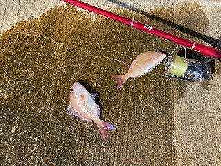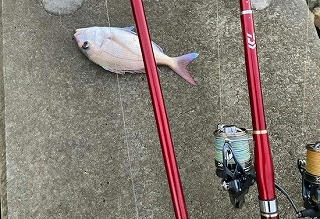 (カレイ大会なのにカレイは釣れず、やっと釣ったのはマダイ32・7㌢)