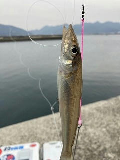 まず赤丸、一投目からアタリがあり三投連続でキスが