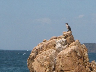 いつもの海岸線、ずいぶんと前に通った時には鵜が岩の上に佇んでいました。