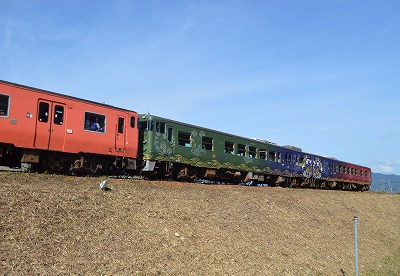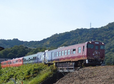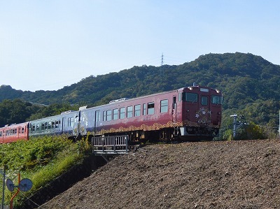 貨物列車くらい大きな音を立てて通過するなら気づくのだが、普通列車よりもやわらかな音で通り過ぎる、さすが瑞風。