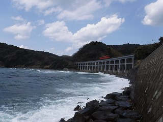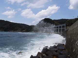 (気動車が見えた時は、波しぶきが上がらず・・・・・自然には勝てん