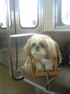 下の写真は、当時103歳だった私の母に会いに行くため、2010年の2月に手荷物料金270円支払って、ケージに入って初のJR電車に乗った時の愛犬ぷりん。