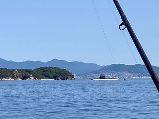 このままここで釣り続けても、また重量感のあるカワハギが釣れたら心もとない・・・・と考え、今度は小黒神島が見える浅い場所に移動。