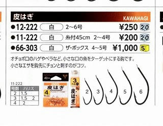 今度は小さめな《皮はぎ》針の5号仕掛けを持って。