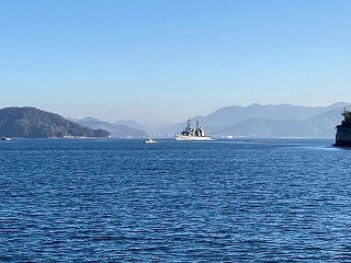 (釣り場からは、江田島北岸沖を航行する自衛艦も眺められる)