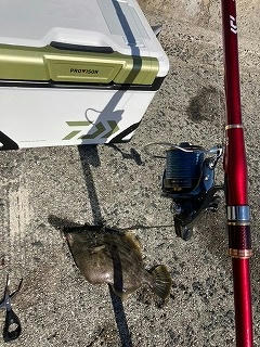 本日27日、大畠辺りに釣りに行ったYS田さん、イシガレイの40㌢とマコガレイの38㌢を釣っていた