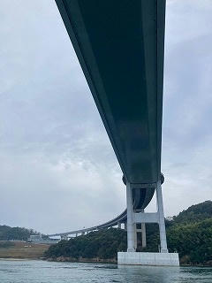 (➍のコースだと、普段見ることのできない来島海峡第二大橋を真下から見ました)