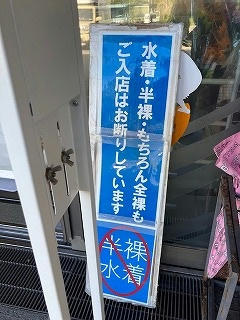 すぐ裏は素晴らしい海水浴場があるので、海水浴客に対する看板。
