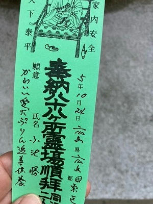 (歩き遍路の時は、願意のところに「かわいい愛犬ぷりん追善供養」とお願いしました)
