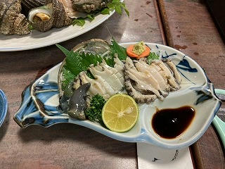 その時、壁に貼られたお品書きを見ると、海賊焼きセット10,000円、伊勢えび刺し身・アワビの刺し身が時価とあったので、今回はそれらを食べるために、広島からは一番遠い徳島県海陽町まで走った