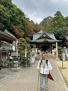 (四国八十八か所、第88番札所大窪寺本堂を背景に)