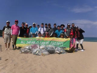 琴ヶ浜に感謝のつもりで、全員そろってプラごみ掃除、集めたゴミは漂着物がメイン。