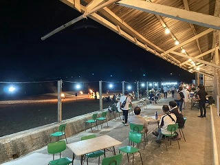 (鳴き砂の浜、かがり火が焚かれてムードは満点)