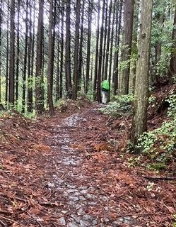 (42番仏木寺から43番明石寺への遍路道、歯長峠を登るオランダからの女性)