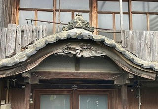 (交差した大根の軒瓦や鶴の透かし彫りが見事な、卯之町の古民家)